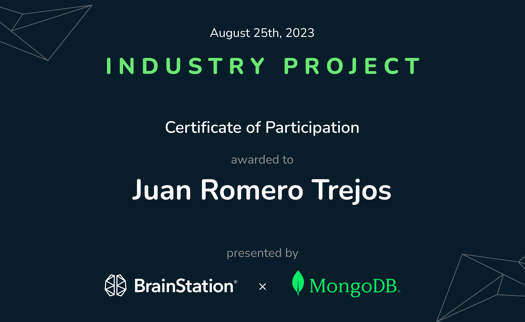 During my time at BrainStation, I had the pleasure of participating in the industry project. Throughout this experience, I was able to work alongside other UX Designers as well as Software Engineers and Data Scientists to create a solution to the provided problem space.